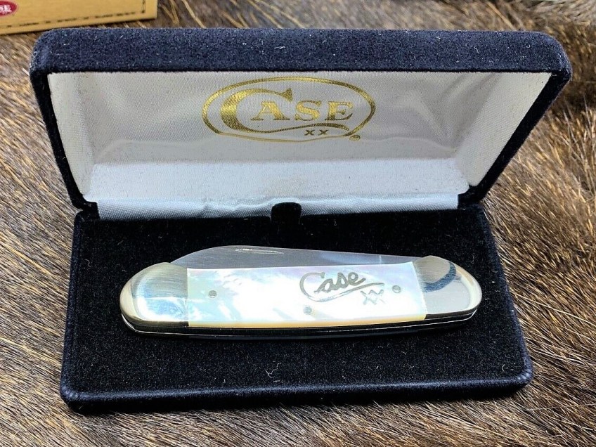 15 Published July 9, 2019 at 1138 × 854 in *SOLD* 2001 Case Silver Script Canoe Knife Genuine MOP Mint Velvet Box