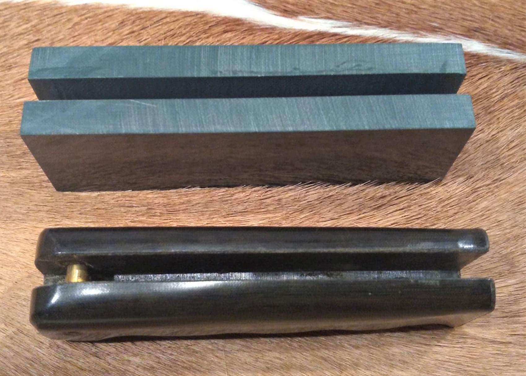 ***SOLD*** Green Canvas Micarta Slotted Block + Extra! Posted on December 21, 2021 by severanceknives Model 14/15 Dark Green Canvas Micarta Slotted Block + An Original Black Handle! Both pieces ~ One Price! Share this: Click to share on X (Opens in new window) X Click to share on Facebook (Opens in new window) Facebook Like Loading... Related