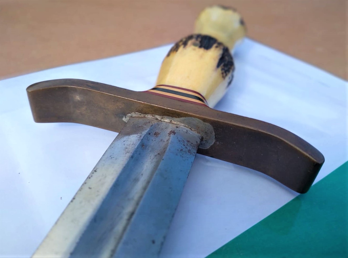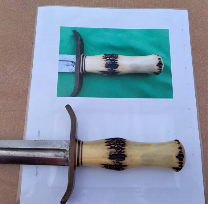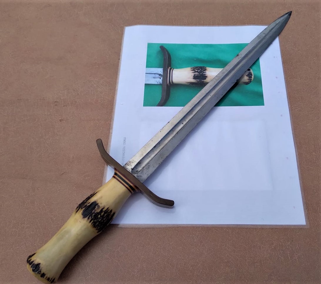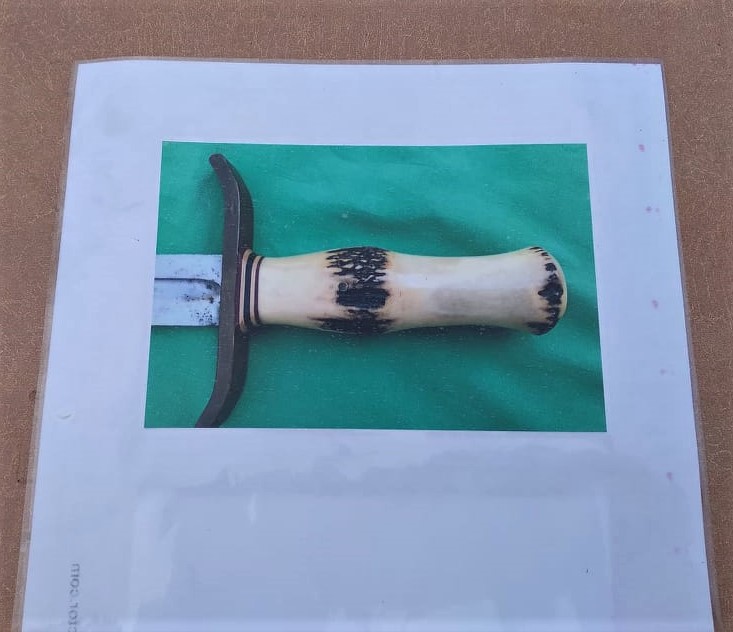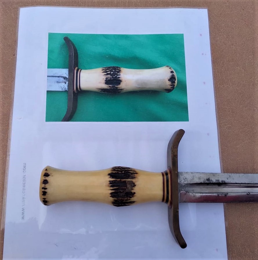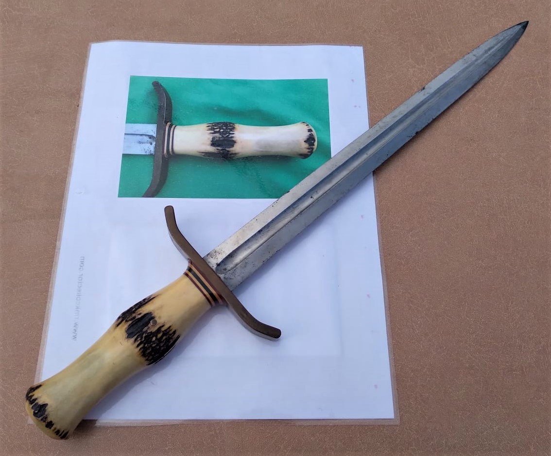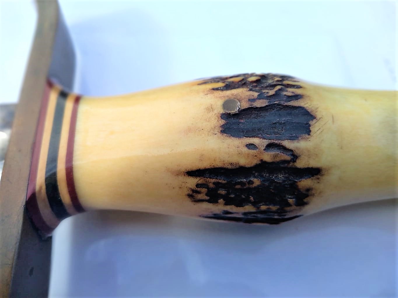 - Sambar Stag Commando shaped handle pinned in place.