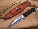 Model 16-7″ Dive Knife With Stainless Steel Blade and Saw Teeth! Set Up like a Model 14 Attack, but with a 7 inch blade! Also has an Extra charge Nickel/Silver Model 1 Double Fighting Hilt! Single Finger Grip Black Micarta … Continue reading
